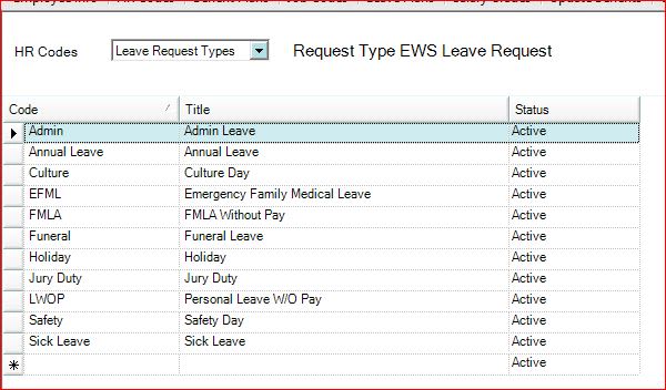 EWS ability to choose what leave type automatically enters time in the timesheet