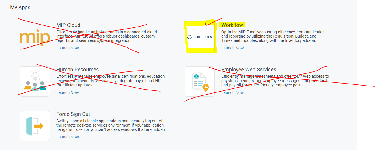 What I would like to see is a feature that would hide the apps I do not want users to have access to. If I have an HR user, they do not need to see Microix or the rest of MIP.